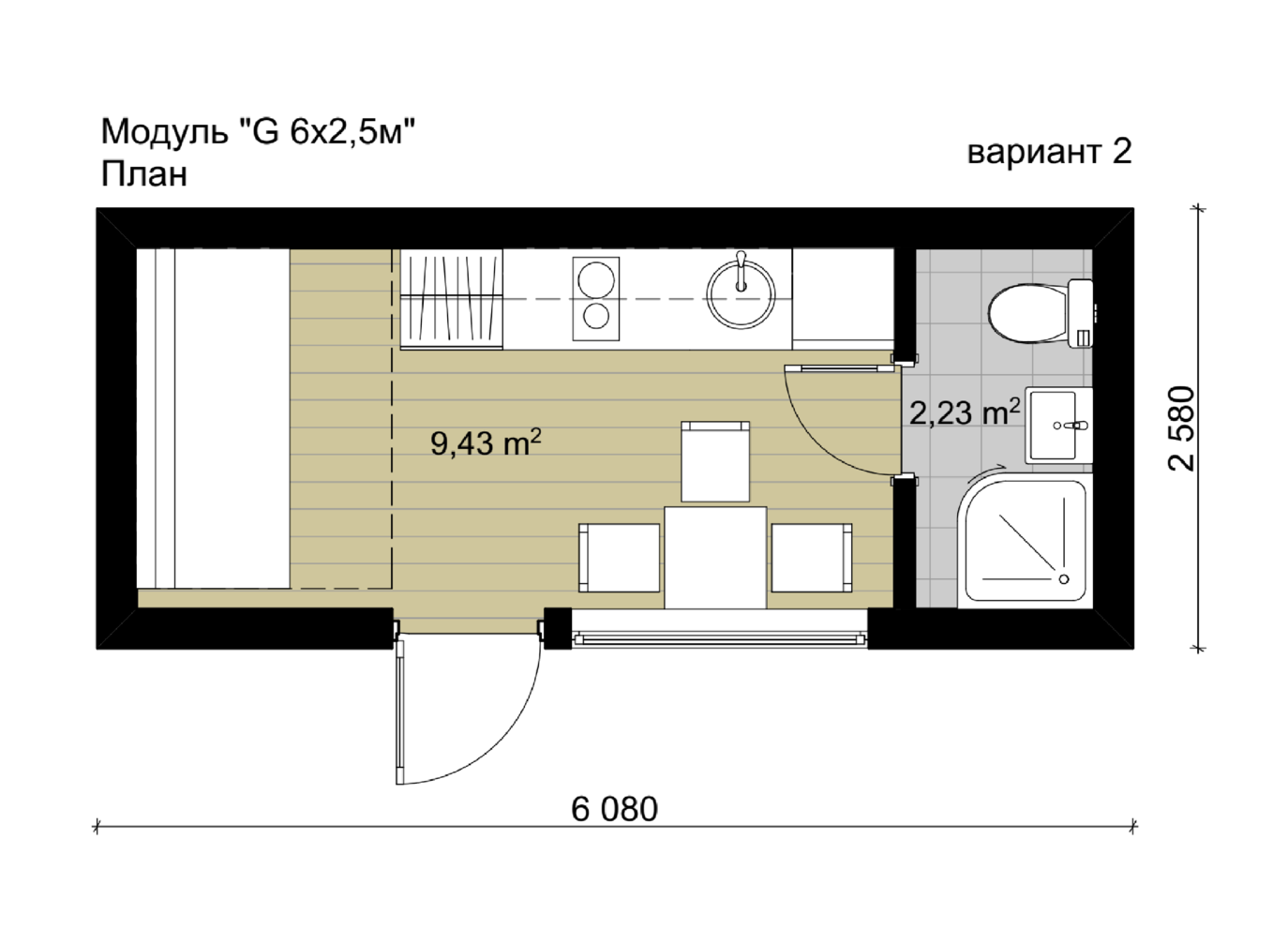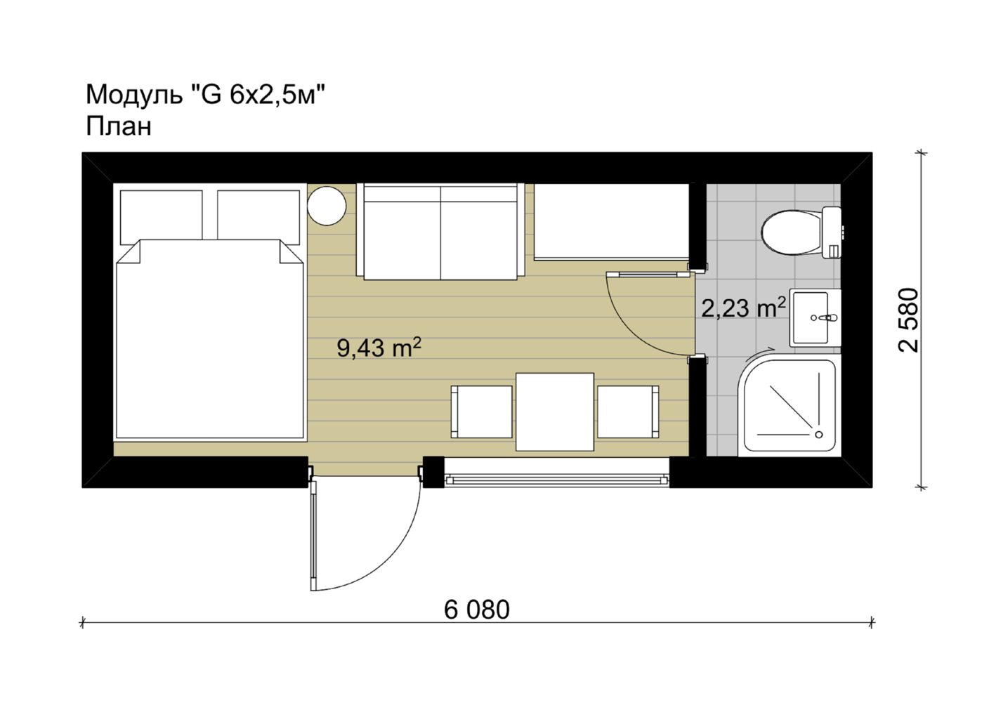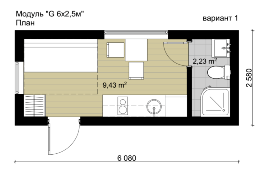 - Размеры модуля 6м х 2,58м