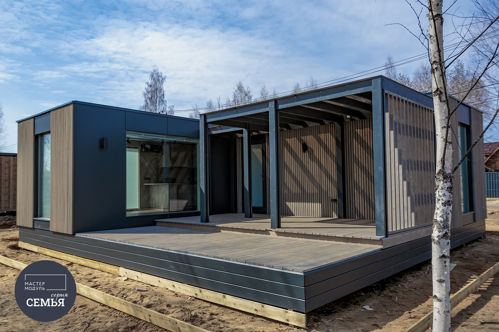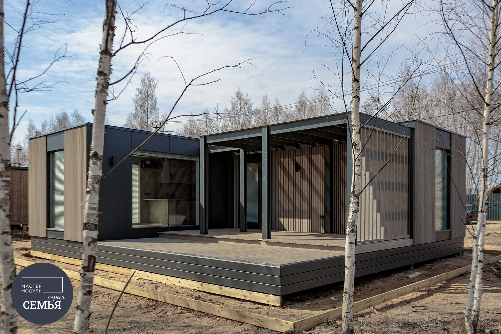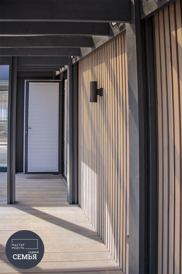 Фасады выполнены из фиброцементной плиты со вставками из деревянных реек. Возможна вариативность цветов панелей и выкраса реек. Безопасность и практичность материалов в сочетании с продуманными планировками и качественным исполнением – всё, что нужно для комфорта Вашей семьи. Панорамные окна смотрят прямо на природу. А энергосберегающий стеклопакет обеспечит лучшую теплоэффективность помещений. Сочетание СМЛ панелей и деревянных реек дарит ощущение современного уюта.