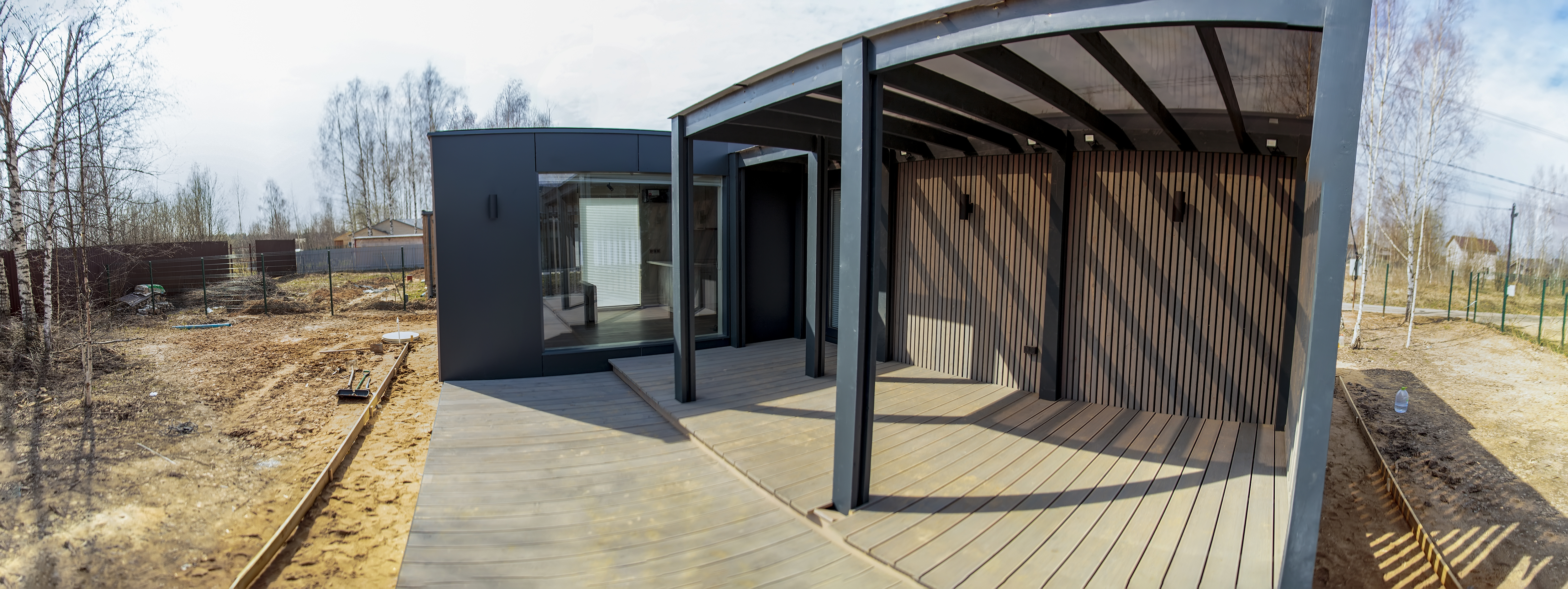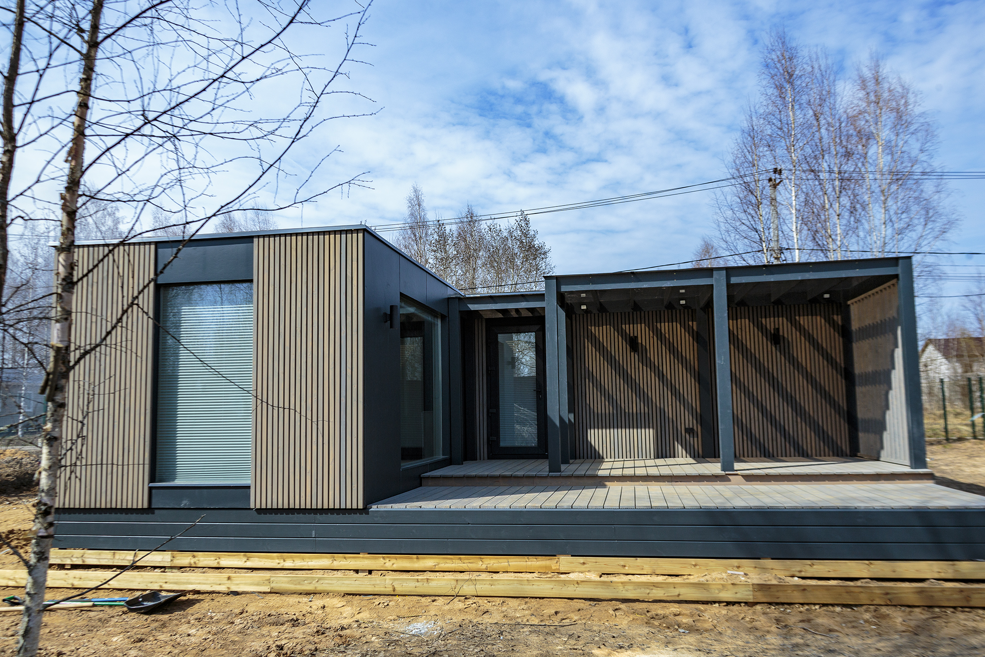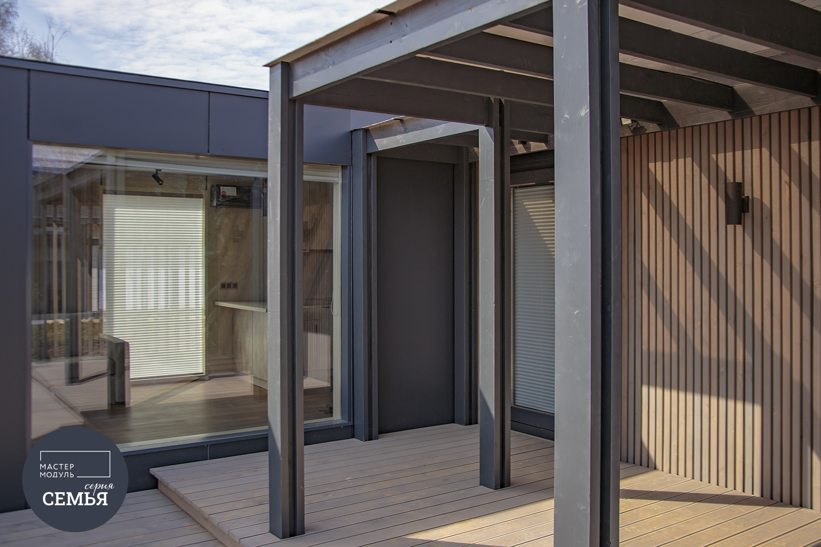 Фасады выполнены из фиброцементной плиты со вставками из деревянных реек. Возможна вариативность цветов панелей и выкраса реек. Безопасность и практичность материалов в сочетании с продуманными планировками и качественным исполнением – всё, что нужно для комфорта Вашей семьи. Панорамные окна смотрят прямо на природу. А энергосберегающий стеклопакет обеспечит лучшую теплоэффективность помещений. Сочетание СМЛ панелей и деревянных реек дарит ощущение современного уюта.