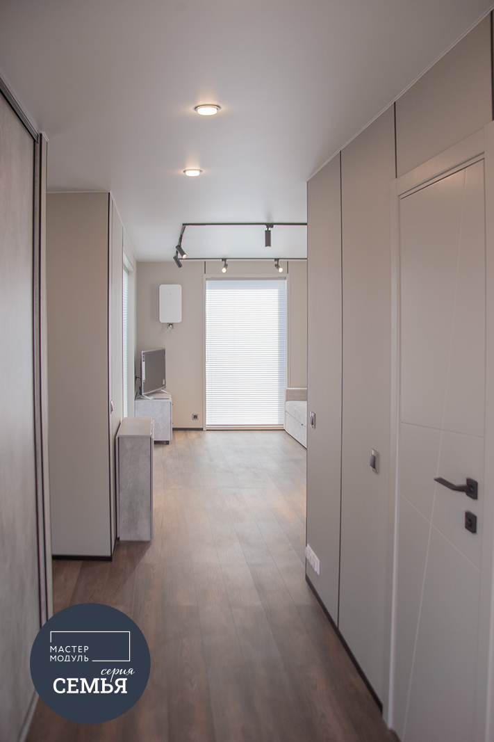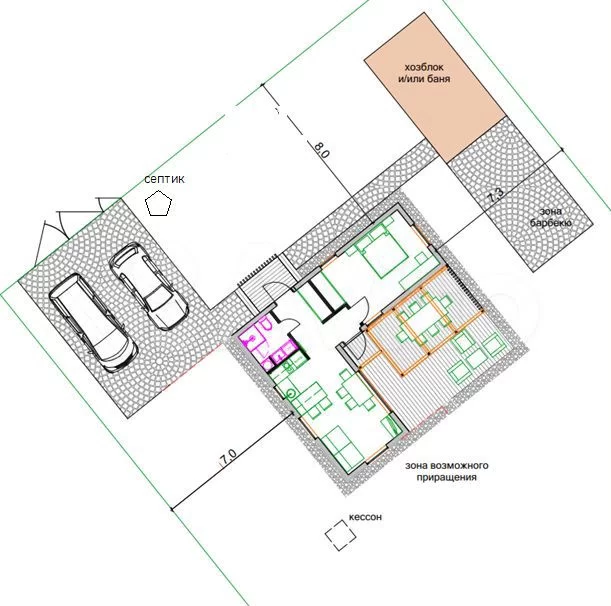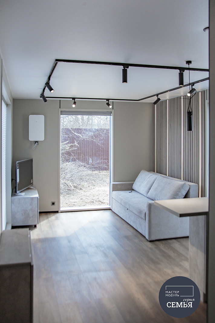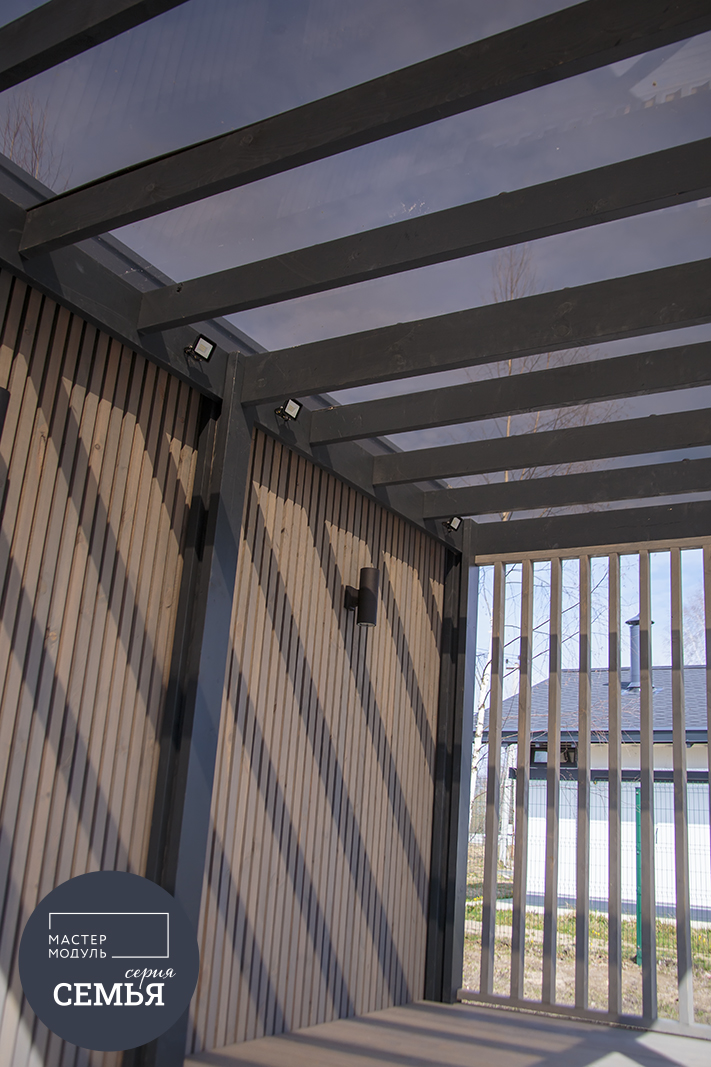 При желании дом можно дорастить дополнительными модулями, увеличив его площадь до 70 или 90 квадратных метров. При планировании расположения дома на участке мы предусмотрели такую возможность.