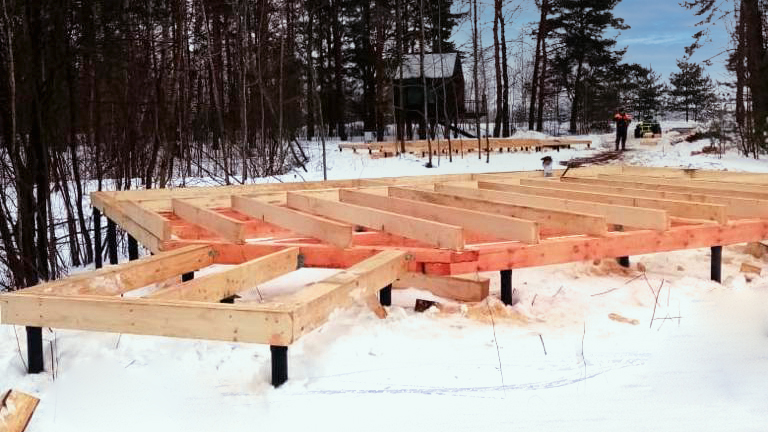 При заказе услуги, нашими специалистами производится разметка свайного поля и точек подключения коммуникаций, установка свай и обвязка антисептированным брусом.